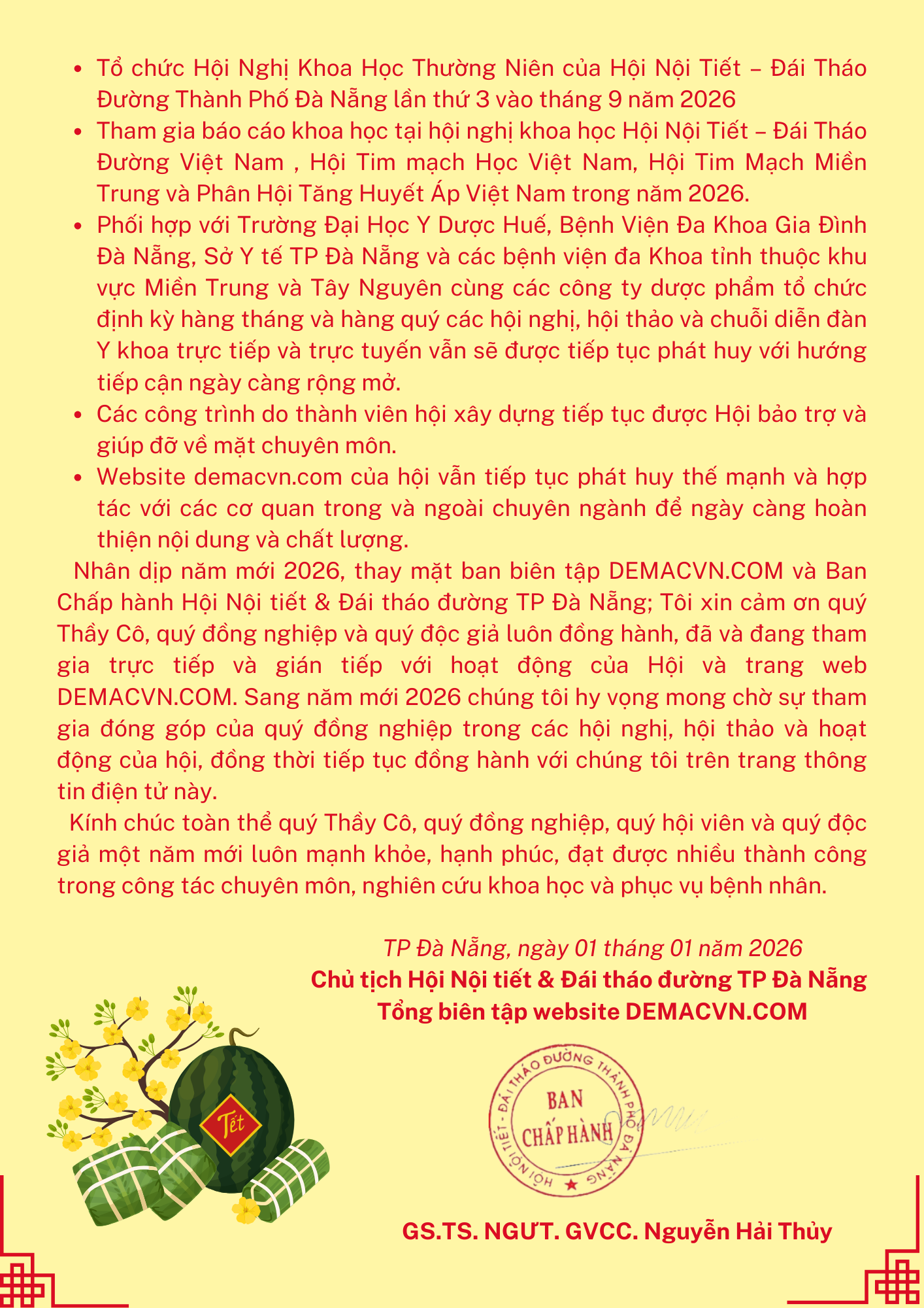 Thư chúc mừng năm mới 2026 Hội Nội tiết & Đái tháo đường Miền Trung 5 ngày ago Tin tức hội 8 Views Share Twitter Stumbleupon LinkedIn Pinterest